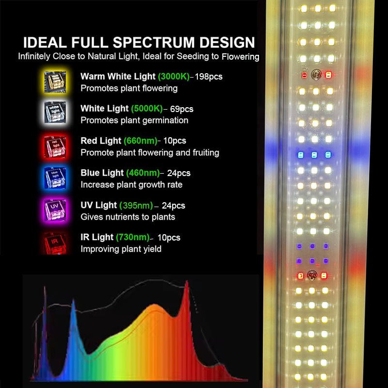 This full spectrum grow light supports all plant growth stages, from seedling to flowering, making it an ideal solution for professional growers and agricultural projects.