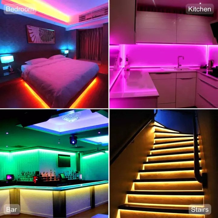 RGBIC LED strip lights are an advanced version of RGB strips, allowing multiple colors to appear simultaneously. This makes them perfect for high-end decorative lighting and smart home applications.